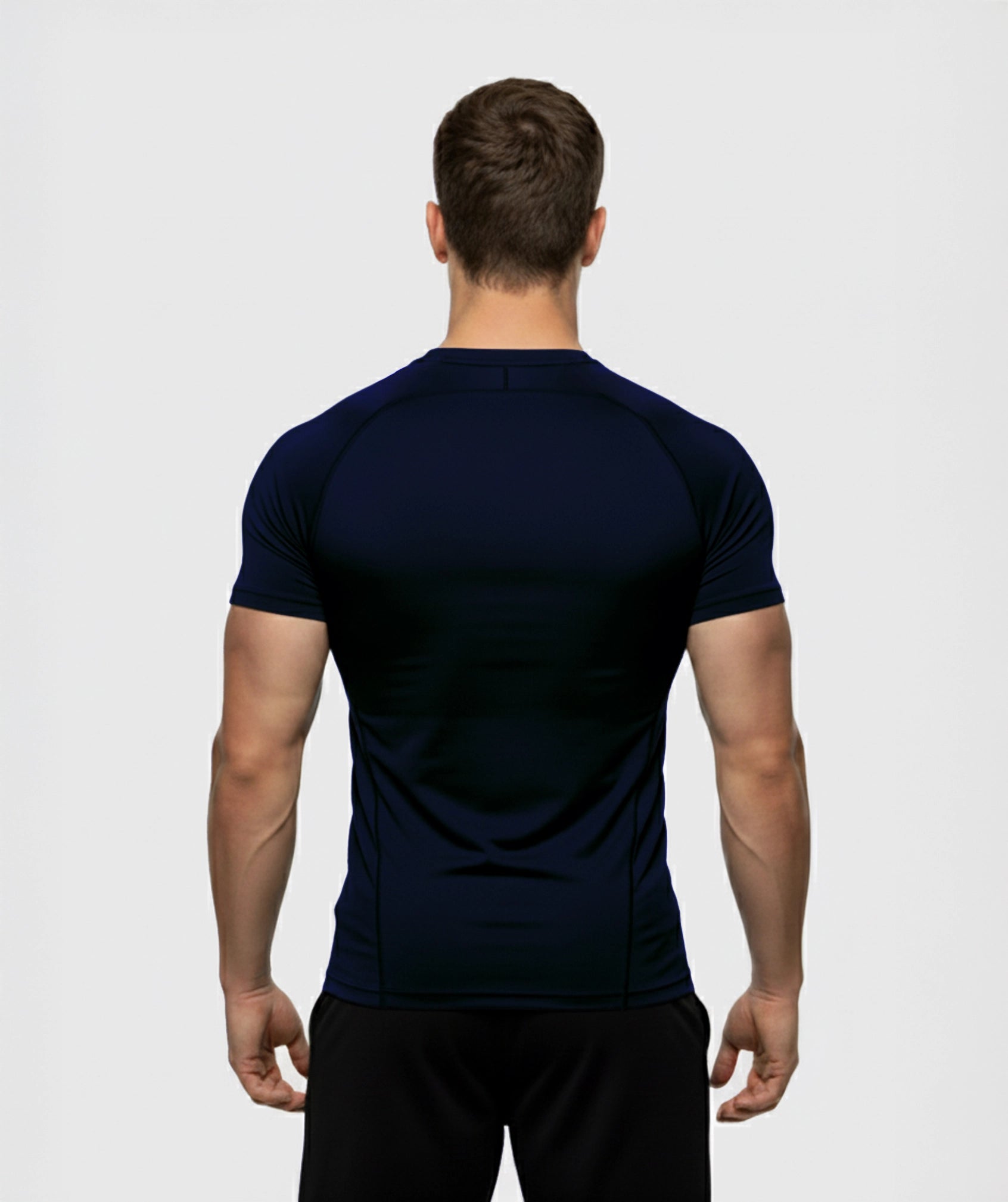 Combina potencia y estilo con nuestra playera azul marino, diseñada para rendir al máximo durante tus entrenamientos más intensos. Confeccionada con una mezcla de licra y algodón, esta prenda ofrece elasticidad, suavidad y durabilidad para brindarte libertad total de movimiento en el gym o boxeo.