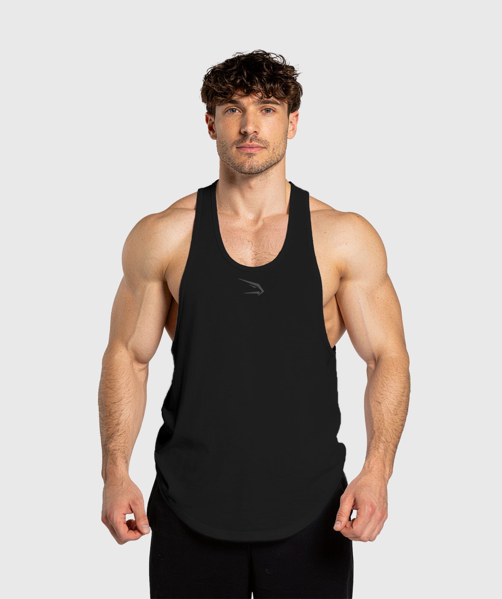 Lleva tu entrenamiento al siguiente nivel con nuestra stringer olímpica de corte amplio, creada para brindarte la máxima libertad de movimiento y un estilo deportivo moderno. Su composición de 90% algodón y 10% spandex ofrece suavidad, elasticidad y frescura en cada repetición.